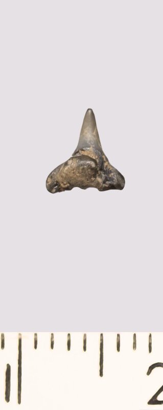Зуб. Акула. Synechodus sp. Классификация: Хордовые Chordata, Позвоночные Vertebrata, Хрящевые рыбы Chondrichthyes, Пластиножаберные Elasmobranchii