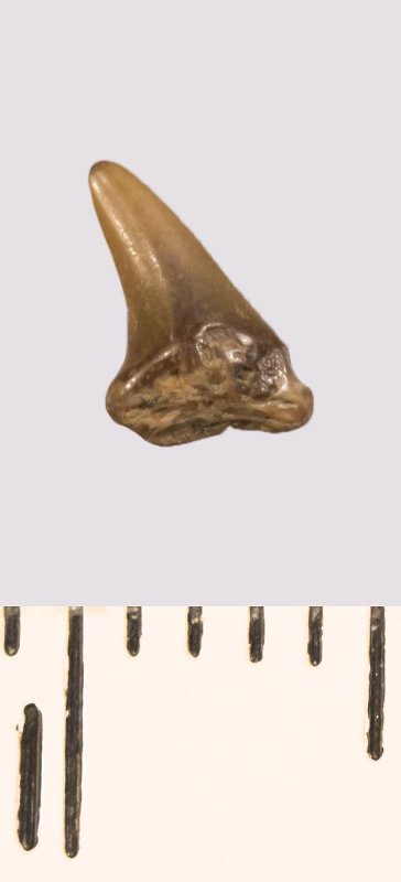 Зуб (фрагмент). Акула. Lamniformes gen. et sp. indet. Классификация: Хордовые Chordata, Позвоночные Vertebrata, Хрящевые рыбы Chondrichthyes, Пластиножаберные Elasmobranchii