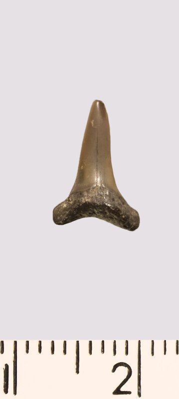 Зуб. Акула. Scapanorhynchus sp. Классификация: Хордовые Chordata, Позвоночные Vertebrata, Хрящевые рыбы Chondrichthyes, Пластиножаберные Elasmobranchii