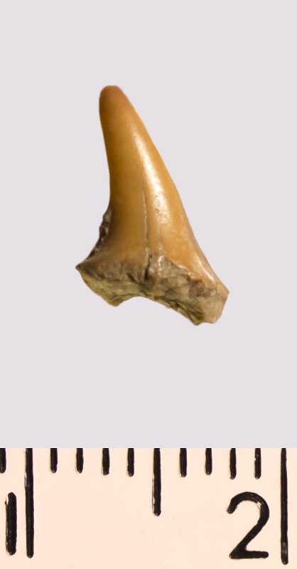 Зуб (фрагмент). Акула. Lamniformes gen. et sp. indet. Классификация: Хордовые Chordata, Позвоночные Vertebrata, Хрящевые рыбы Chondrichthyes, Пластиножаберные Elasmobranchii