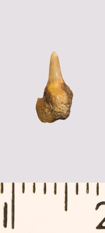 Зуб (фрагмент). Акула. Protolamna sp. Классификация: Хордовые Chordata, Позвоночные Vertebrata, Хрящевые рыбы Chondrichthyes, Пластиножаберные Elasmobranchii