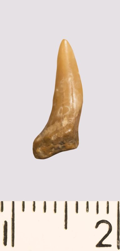 Зуб (фрагмент). Акула. Scapanorhynchus sp. Классификация: Хордовые Chordata, Позвоночные Vertebrata, Хрящевые рыбы Chondrichthyes, Пластиножаберные Elasmobranchii