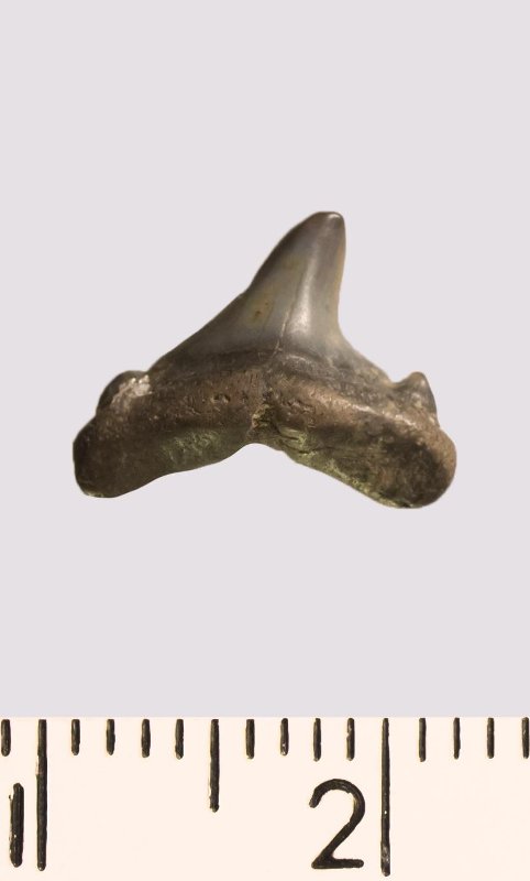 Зуб. Акула. Scapanorhynchus sp. Классификация: Хордовые Chordata, Позвоночные Vertebrata, Хрящевые рыбы Chondrichthyes, Пластиножаберные Elasmobranchii