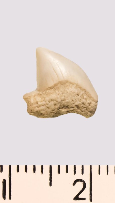 Зуб. Акула. Anacorax santonicus Glueckman & Zhelezko, 1979. Классификация: Хордовые Chordata, Позвоночные Vertebrata, Хрящевые рыбы Chondrichthyes, Пластиножаберные Elasmobranchii