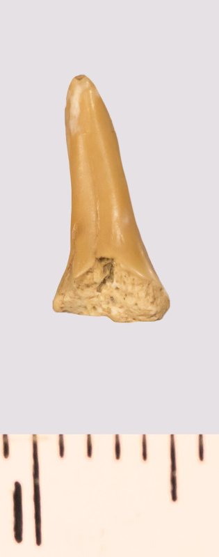 Зуб (фрагмент). Акула. Odontaspis venusta (Leriche, 1929). Классификация: Хордовые Chordata, Позвоночные Vertebrata, Хрящевые рыбы Chondrichthyes, Пластиножаберные Elasmobranchii