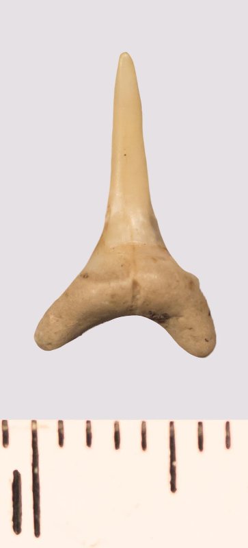 Зуб. Акула. Odontaspis venusta (Leriche, 1929). Классификация: Хордовые Chordata, Позвоночные Vertebrata, Хрящевые рыбы Chondrichthyes, Пластиножаберные Elasmobranchii