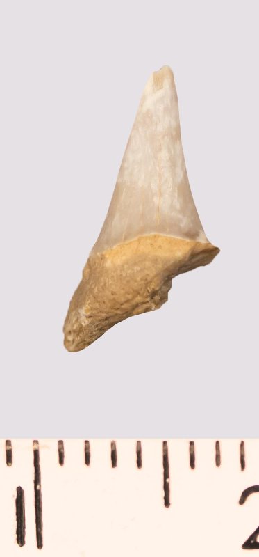 Зуб. Акула. Odontaspis venusta (Leriche, 1929). Классификация: Хордовые Chordata, Позвоночные Vertebrata, Хрящевые рыбы Chondrichthyes, Пластиножаберные Elasmobranchii