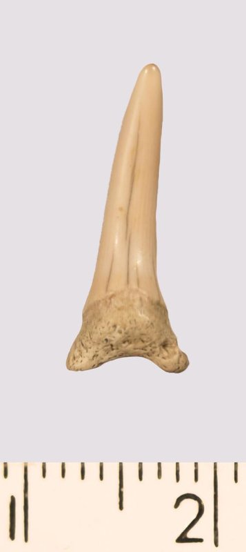 Зуб. Акула. Scapanorhynchus sp. Классификация: Хордовые Chordata, Позвоночные Vertebrata, Хрящевые рыбы Chondrichthyes, Пластиножаберные Elasmobranchii