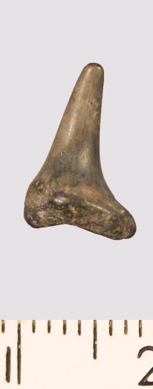 Зуб. Акула. Scapanorhynchus sp. Классификация: Хордовые Chordata, Позвоночные Vertebrata, Хрящевые рыбы Chondrichthyes, Пластиножаберные Elasmobranchii