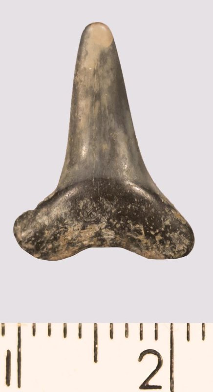 Зуб. Акула. Scapanorhynchus sp. Классификация: Хордовые Chordata, Позвоночные Vertebrata, Хрящевые рыбы Chondrichthyes, Пластиножаберные Elasmobranchii