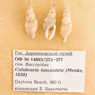 Морской брюхоногий моллюск. Colubraria lanceolata (Menke, 1828). Классификация: Моллюски Mollusca, Брюхоногие Gastropoda, Neogastropoda, Buccinidae