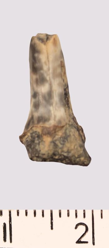 Зуб (фрагмент). Акула. Scapanorhynchus gigas Woodward, 1889. Классификация: Хордовые Chordata, Позвоночные Vertebrata, Хрящевые рыбы Chondrichthyes, Пластиножаберные Elasmobranchii
