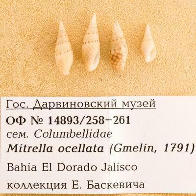 Морской брюхоногий моллюск. Mitrella ocellata (Gmelin, 1791). Классификация: Моллюски Mollusca, Брюхоногие Gastropoda, Neogastropoda, Columbellidae