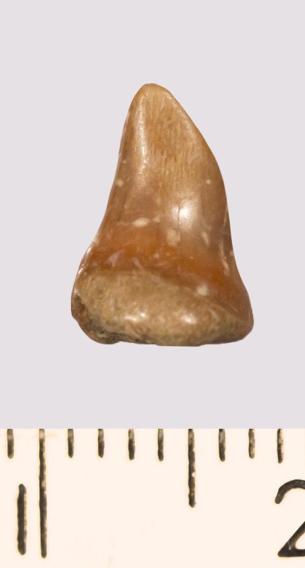 Зуб (фрагмент). Акула. Lamniformes gen. et sp. indet. Классификация: Хордовые Chordata, Позвоночные Vertebrata, Хрящевые рыбы Chondrichthyes, Пластиножаберные Elasmobranchii