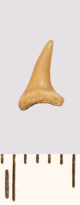 Зуб. Акула. Scapanorhynchus rhaphiodon Agassiz, 1843. Классификация: Хордовые Chordata, Позвоночные Vertebrata, Хрящевые рыбы Chondrichthyes, Пластиножаберные Elasmobranchii