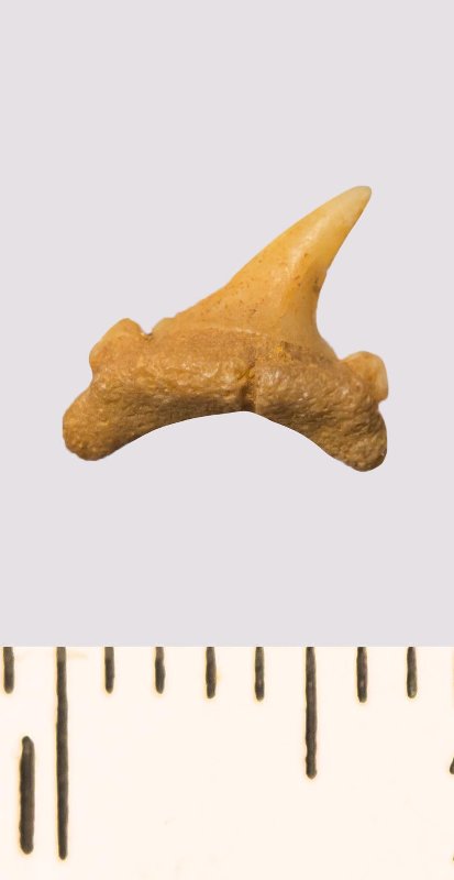 Зуб. Акула. Scapanorhynchus rhaphiodon Agassiz, 1843. Классификация: Хордовые Chordata, Позвоночные Vertebrata, Хрящевые рыбы Chondrichthyes, Пластиножаберные Elasmobranchii