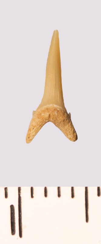 Зуб. Акула. Scapanorhynchus rhaphiodon Agassiz, 1843. Классификация: Хордовые Chordata, Позвоночные Vertebrata, Хрящевые рыбы Chondrichthyes, Пластиножаберные Elasmobranchii