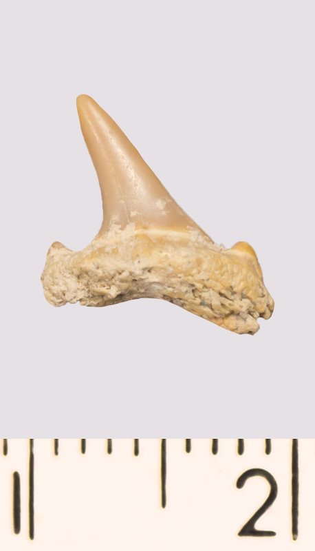 Зуб. Акула. Odontaspis venusta (Leriche, 1929). Классификация: Хордовые Chordata, Позвоночные Vertebrata, Хрящевые рыбы Chondrichthyes, Пластиножаберные Elasmobranchii