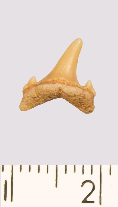 Зуб. Акула. Odontaspis subulata (Agassiz, 1843). Классификация: Хордовые Chordata, Позвоночные Vertebrata, Хрящевые рыбы Chondrichthyes, Пластиножаберные Elasmobranchii