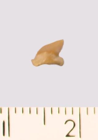 Зуб (фрагмент). Акула. Palaeoanacorax sp. Классификация: Хордовые Chordata, Позвоночные Vertebrata, Хрящевые рыбы Chondrichthyes, Пластиножаберные Elasmobranchii