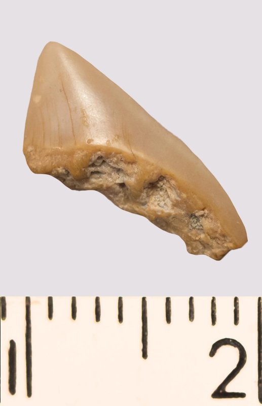 Зуб (фрагмент). Акула. Anacorax sp. Классификация: Хордовые Chordata, Позвоночные Vertebrata, Хрящевые рыбы Chondrichthyes, Пластиножаберные Elasmobranchii