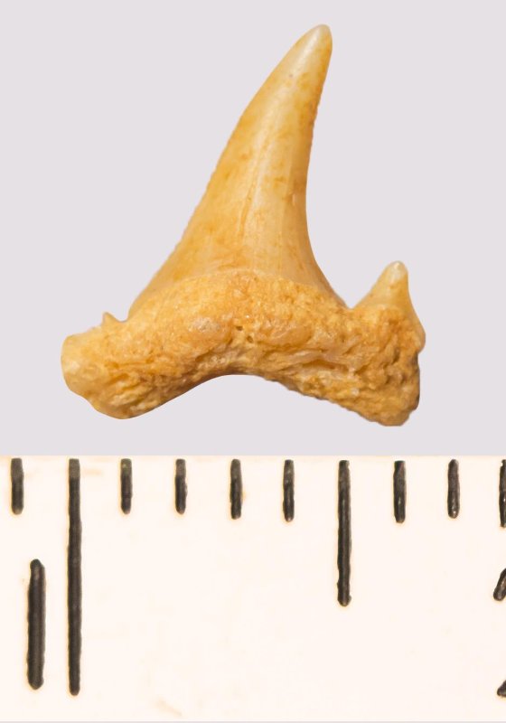 Зуб. Акула. Scapanorhynchus rhaphiodon Agassiz, 1843. Классификация: Хордовые Chordata, Позвоночные Vertebrata, Хрящевые рыбы Chondrichthyes, Пластиножаберные Elasmobranchii