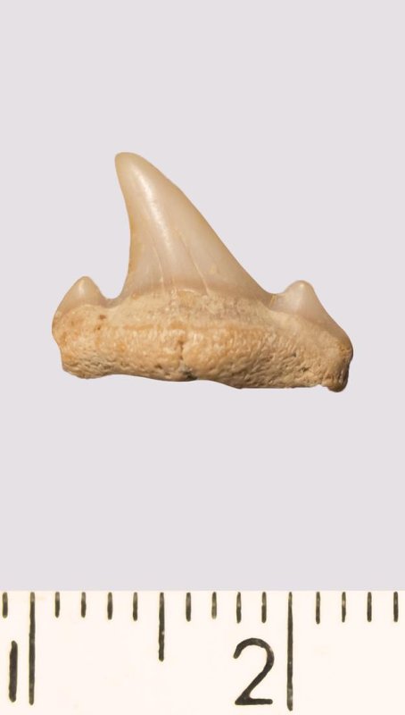 Зуб. Акула. Odontaspis macrorhiza (Cope) Leriche, 1902. Классификация: Хордовые Chordata, Позвоночные Vertebrata, Хрящевые рыбы Chondrichthyes, Пластиножаберные Elasmobranchii