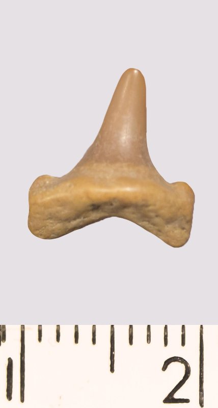 Зуб. Акула. Odontaspis macrorhiza (Cope) Leriche, 1902. Классификация: Хордовые Chordata, Позвоночные Vertebrata, Хрящевые рыбы Chondrichthyes, Пластиножаберные Elasmobranchii
