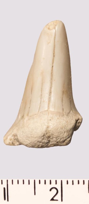 Зуб (фрагмент). Акула. Cretoxyrhina sp. Классификация: Хордовые Chordata, Позвоночные Vertebrata, Хрящевые рыбы Chondrichthyes, Пластиножаберные Elasmobranchii