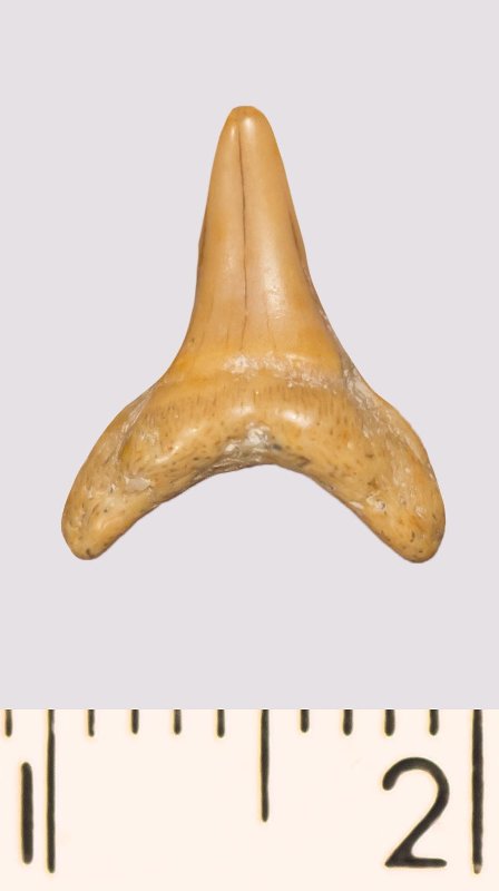 Зуб. Акула. Odontaspis venusta (Leriche, 1929). Классификация: Хордовые Chordata, Позвоночные Vertebrata, Хрящевые рыбы Chondrichthyes, Пластиножаберные Elasmobranchii