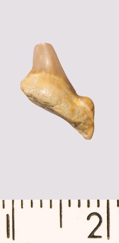 Зуб. Акула. Odontaspis macrorhiza (Cope) Leriche, 1902. Классификация: Хордовые Chordata, Позвоночные Vertebrata, Хрящевые рыбы Chondrichthyes, Пластиножаберные Elasmobranchii