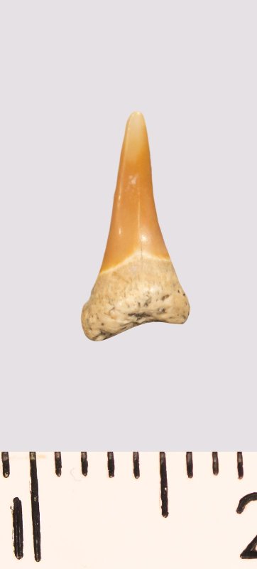 Зуб. Акула. Odontaspis macrorhiza (Cope) Leriche, 1902. Классификация: Хордовые Chordata, Позвоночные Vertebrata, Хрящевые рыбы Chondrichthyes, Пластиножаберные Elasmobranchii