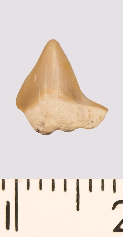 Зуб (фрагмент). Акула. Anacorax sp. Классификация: Хордовые Chordata, Позвоночные Vertebrata, Хрящевые рыбы Chondrichthyes, Пластиножаберные Elasmobranchii