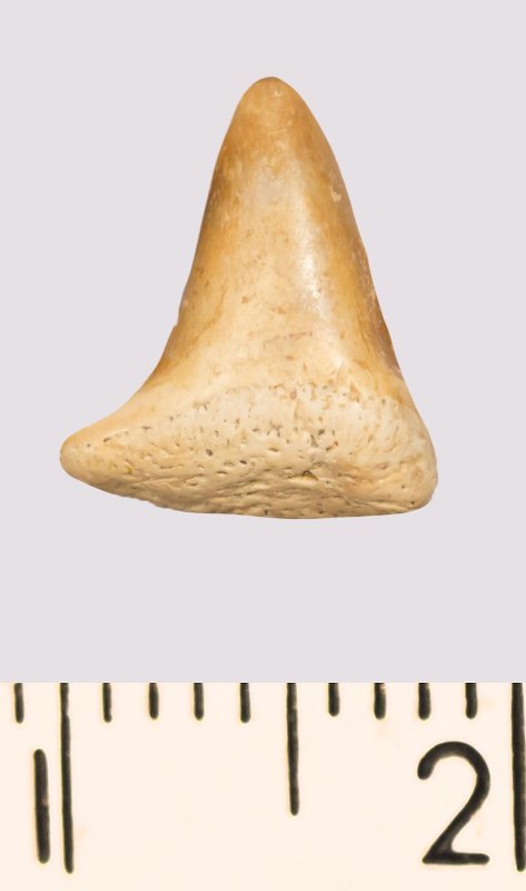 Зуб (фрагмент). Акула. Meristodon sp. Классификация: Хордовые Chordata, Позвоночные Vertebrata, Хрящевые рыбы Chondrichthyes, Пластиножаберные Elasmobranchii