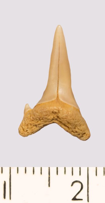 Зуб. Акула. Odontaspis subulata (Agassiz, 1843). Классификация: Хордовые Chordata, Позвоночные Vertebrata, Хрящевые рыбы Chondrichthyes, Пластиножаберные Elasmobranchii