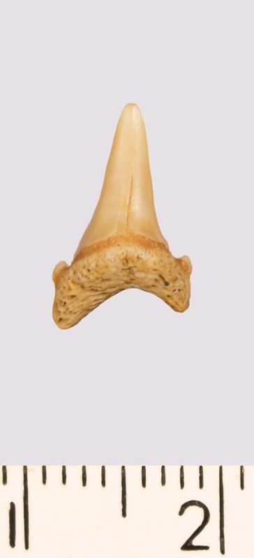 Зуб. Акула. Odontaspis subulata (Agassiz, 1843). Классификация: Хордовые Chordata, Позвоночные Vertebrata, Хрящевые рыбы Chondrichthyes, Пластиножаберные Elasmobranchii