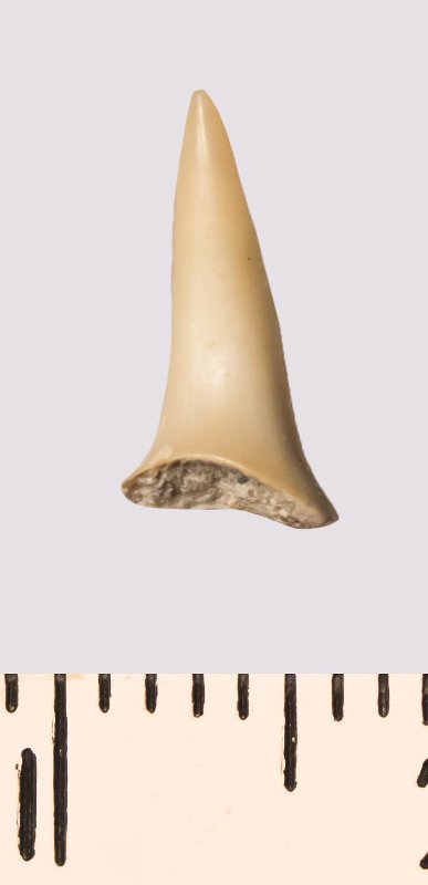 Зуб (фрагмент). Акула. Odontaspis venusta (Leriche, 1929). Классификация: Хордовые Chordata, Позвоночные Vertebrata, Хрящевые рыбы Chondrichthyes, Пластиножаберные Elasmobranchii