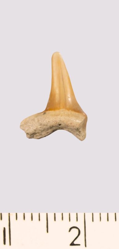 Зуб. Акула. Scapanorhynchus gigas Woodward, 1889. Классификация: Хордовые Chordata, Позвоночные Vertebrata, Хрящевые рыбы Chondrichthyes, Пластиножаберные Elasmobranchii