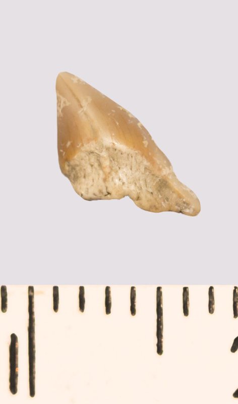 Зуб (фрагмент). Акула. Palaeoanacorax sp. Классификация: Хордовые Chordata, Позвоночные Vertebrata, Хрящевые рыбы Chondrichthyes, Пластиножаберные Elasmobranchii