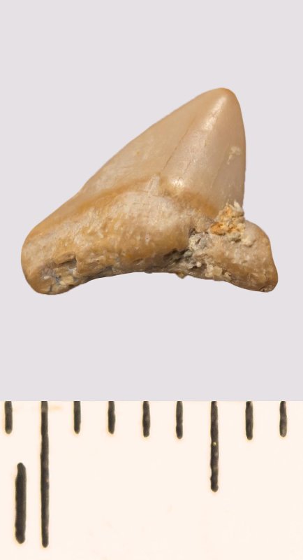 Зуб (фрагмент). Акула. Palaeoanacorax sp. Классификация: Хордовые Chordata, Позвоночные Vertebrata, Хрящевые рыбы Chondrichthyes, Пластиножаберные Elasmobranchii
