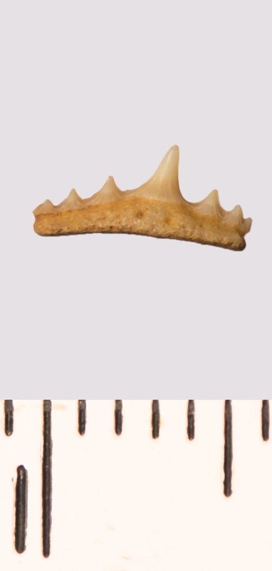 Зуб. Акула. Synechodus sp. Классификация: Хордовые Chordata, Позвоночные Vertebrata, Хрящевые рыбы Chondrichthyes, Пластиножаберные Elasmobranchii