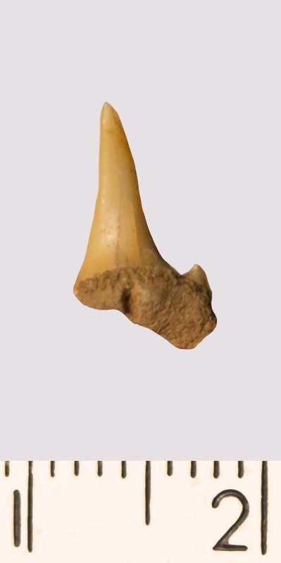 Зуб. Акула. Odontaspis striatula Dalinkevicius, 1935. Классификация: Хордовые Chordata, Позвоночные Vertebrata, Хрящевые рыбы Chondrichthyes, Пластиножаберные Elasmobranchii