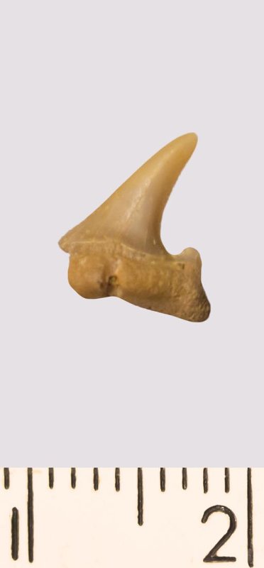 Зуб. Акула. Odontaspis striatula Dalinkevicius, 1935. Классификация: Хордовые Chordata, Позвоночные Vertebrata, Хрящевые рыбы Chondrichthyes, Пластиножаберные Elasmobranchii