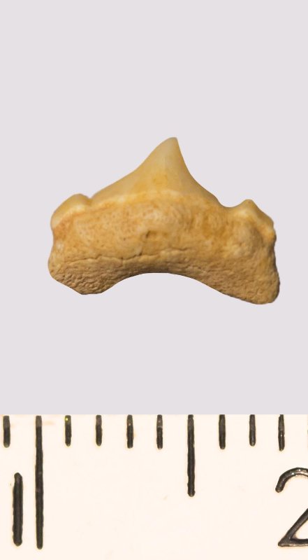 Зуб. Акула. Odontaspis macrorhiza (Cope) Leriche, 1902. Классификация: Хордовые Chordata, Позвоночные Vertebrata, Хрящевые рыбы Chondrichthyes, Пластиножаберные Elasmobranchii