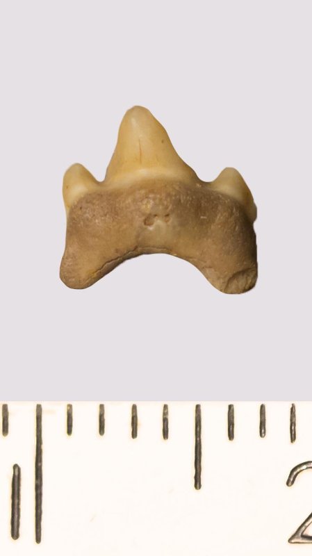 Зуб. Акула. Odontaspis macrorhiza (Cope) Leriche, 1902. Классификация: Хордовые Chordata, Позвоночные Vertebrata, Хрящевые рыбы Chondrichthyes, Пластиножаберные Elasmobranchii