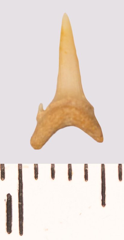 Зуб. Акула. Scapanorhynchus rhaphiodon Agassiz, 1843. Классификация: Хордовые Chordata, Позвоночные Vertebrata, Хрящевые рыбы Chondrichthyes, Пластиножаберные Elasmobranchii
