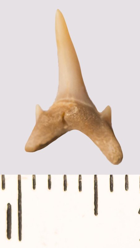 Зуб. Акула. Scapanorhynchus rhaphiodon Agassiz, 1843. Классификация: Хордовые Chordata, Позвоночные Vertebrata, Хрящевые рыбы Chondrichthyes, Пластиножаберные Elasmobranchii
