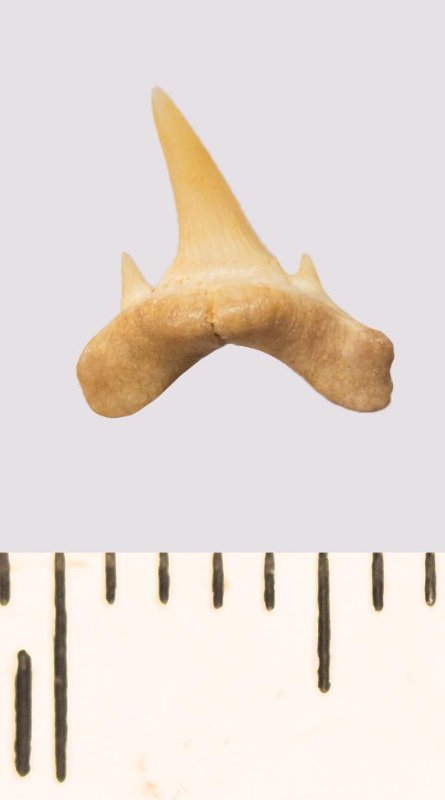 Зуб. Акула. Scapanorhynchus rhaphiodon Agassiz, 1843. Классификация: Хордовые Chordata, Позвоночные Vertebrata, Хрящевые рыбы Chondrichthyes, Пластиножаберные Elasmobranchii