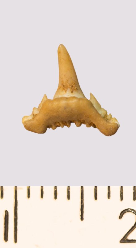 Зуб. Акула. Synechodus sp. Классификация: Хордовые Chordata, Позвоночные Vertebrata, Хрящевые рыбы Chondrichthyes, Пластиножаберные Elasmobranchii