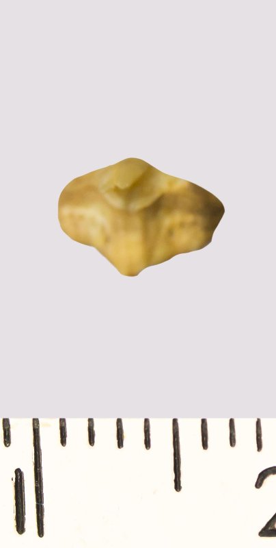 Зуб. Акула. Squatina sp. Классификация: Хордовые Chordata, Позвоночные Vertebrata, Хрящевые рыбы Chondrichthyes, Пластиножаберные Elasmobranchii